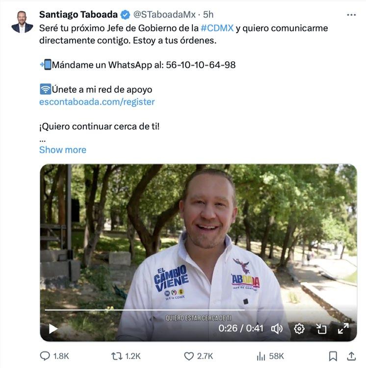 Asimismo, subrayó que renta donde vive y que no es un edificio irregular o que esté vinculado al Cártel inmobiliario, como lo aseguró Brugada en el debate chilango. “Yo donde vivo, rento, no es un edificio irregular y tú no puedes señalar a alguien con respecto a dónde renta… son tres departamentos, qué irregularidad hay… Yo sí vivo donde gobierno, la mitad de la 4T viven en Benito Juárez”. En este sentido, Federico Döring, coordinador de la campaña de Taboada, detalló que lo que promovieron fue una queja para evitar la calumnia electoral, y recordó que hay una tesis de la Sala Superior en donde se marca claramente que la contienda electoral debe sustentarse en la verdad de los dichos, y que no se puede hacer campaña con la calumnia. “La propia campaña de Clara Brugada también ha interpuesto quejas por calumnia, lo que pedimos fue que no se ejerciera la calumnia. Si se dan cuenta Clara Brugada ya no sacó chistes en contra de nuestro candidato,