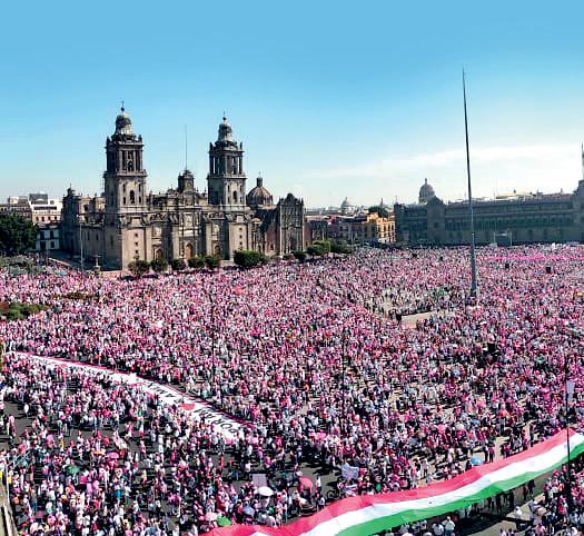 Este domingo 26 de febrero miles de personas se concentraron en el Zócalo capitalino para participar en la concentración en defensa del INE. A las 11:00 horas se convocó para el inició la manifestación programada en defensa del Instituto Nacional Electoral (INE) y en protesta contra el Plan B de la reforma electoral. Los manifestantes se reunieron en diversos puntos del primer plano de la Ciudad de México, teniendo al Zócalo capitalino como el principal punto de encuentro y así estar cerca del templete instalado frente a la suprema corte de justicia de la nación, donde con altavoces y pantallas los asistentes no se perderán los detalle de los pronunciamientos de los oradores. Desde dos horas antes de la hora pactada, los asistentes se dieron cita, la mayoria vestidos de color rojo, rosa y blanco, haciendo alución a los colores del Instituto Nacional Electoral, con la demanda de ¡Mi voto no se toca! Cabe señalar que las principales vías de comunicación que llegan al primer cuadro de la ciudad están cerradas, como lo son la calle Pino Suárez, 20 de noviembre, 16 de septiembre, Madero y 5 de mayo, así mismo se dio a estará dando servicio hasta nuevo aviso.
