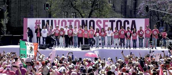 es tarea de nosotros y solo de nosotros. Antes de cerrar esta jornada histórica, debemos renovar nuestra conciencia para participar en los asuntos públicos del país. Debemos encontrar las mejores vías para actuar constante y cotidianamente, en las acciones políticas encaminadas a la preparación y a la emisión del voto el día de las elecciones. También para construir una agenda permanente y completa para la realización integral de nuestra Constitución. En la Constitución están presentes los caminos para sacar adelante a los mexicanos que tan dolorosamente siguen rezagados, a las mujeres que no terminan por ocupar los espacios públicos que les corresponden, a los indígenas marginados por siglos. En la Constitución están señalados los modos de erradicar la violencia que inunda al país, nos lastima tanto y no termina por extinguirse. También en la Constitución, están establecidas las posibilidades para que cada uno de nosotros y nuestras familias construyan sus proyectos de vida. Terminemos de celebrar este encuentro de personas libres, comprometidas antes que nadie consigo mismas y con su país. Mañana, al volver a nuestras actividades ordinarias, pensemos y actuemos en la construcción de una agenda constitucional y democrática, recordemos siempre que la democracia requiere de demócratas, agentes participativos del cambio, personas involucradas en la renovación de nuestro país, que cada uno de nosotros estamos llamados a ser demócratas. Este acto cívico tan importante, tan generoso, tan hermoso, así lo demuestra. No solo hoy debemos ser demócratas, debemos serlo a diario y de todas las maneras posibles. Esta enorme concentración ciudadana nos lo ha recordado y a este llamado hemos ya respondido “Mi voto no se toca”.