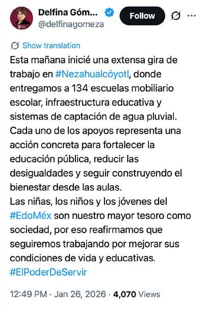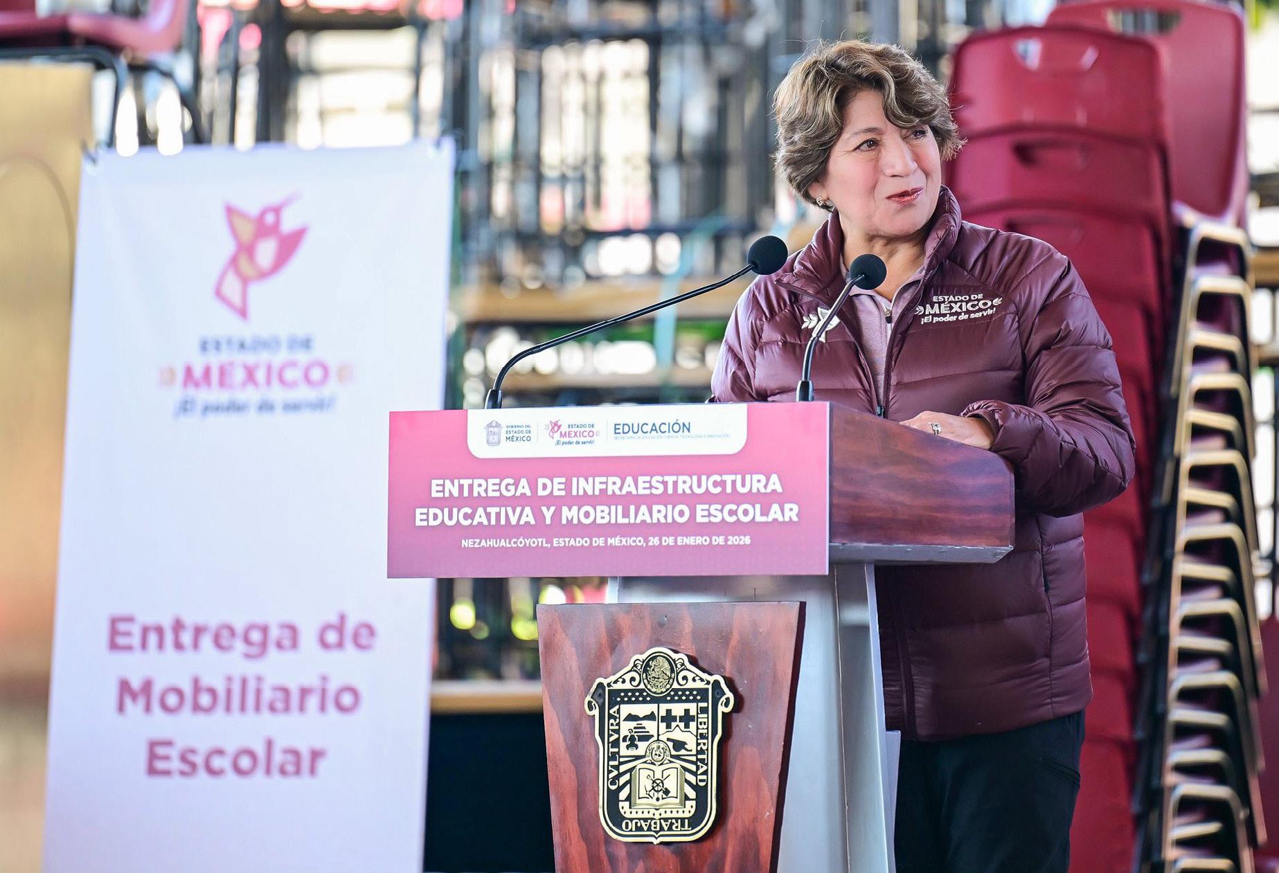 Con una inversión de más de 57 millones de pesos, la Gobernadora del Estado de México, Delfina Gómez Álvarez, entregó mobiliario, infraestructura educativa y sistemas de captación de lluvia en beneficio de 134 escuelas del municipio de Nezahualcóyotl