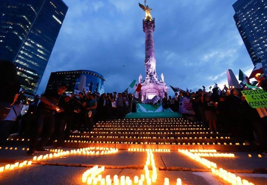 “El Poder Judicial no va a caer”, se escucha en las consignas de los manifestantes, quienes aparecieron con banderas de México, así como velas en representación del ‘luto’ que implica que se materialice la reforma, que entre otras cosas exige la elección de ministros, jueces y magistrados mediante el voto popular.