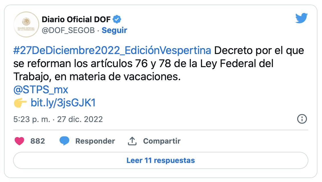 DOF PUBLICA DICTAMEN DE VACACIONES DIGNAS ENTRA EN VIGOR A PRIMERA HORA DE 2023