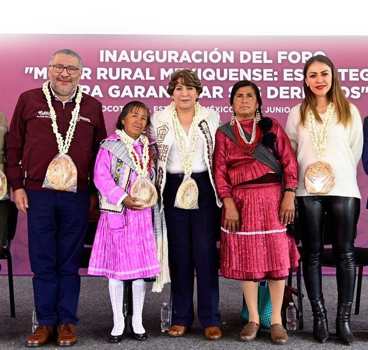 La Gobernadora Delfina Gómez Álvarez inauguró el Foro Mujeres Rurales Mexiquenses: Estrategias para Garantizar sus Derechos, el cual tiene como finalidad escuchar las necesidades de mexiquenses campesinas, indígenas y que viven en comunidades rurales, para generar políticas y programas que permitan el desarrollo y la visualización de este sector. “Abordemos los desafíos y encontremos las soluciones, los medios, lo canales para acercarles las herramientas que les permitan convertirse en mujeres que transformen, primero su realidad, después a su familia y la de su localidad”, expresó la Gobernadora Delfina Gómez Álvarez. La Mandataria estatal indicó que en el Estado de México más de un millón de mujeres viven en zonas rurales, de las cuales, 76 por ciento contribuyen a las labores productivas, pero desafortunadamente, son