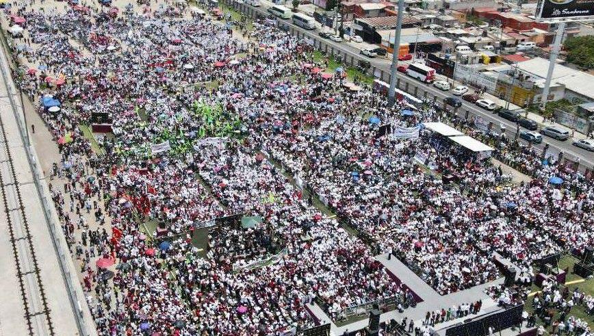 Cerró campaña ente más de 100 mil militantes y simpatizantes en Valle de Chalco, acompañada por la Jefa de Gobierno de la Ciudad de México, Claudia Sheinbaum, gobernadores, senadores, diputados federales, diputados locales y presidentes municipales de Morena