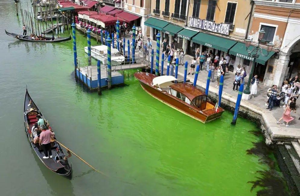 La mancha color verde brillante apareció en el canal que conecta Campo San Luca con el Gran Canal y poco a poco se fue extendiendo por el resto de los canales venecianos
