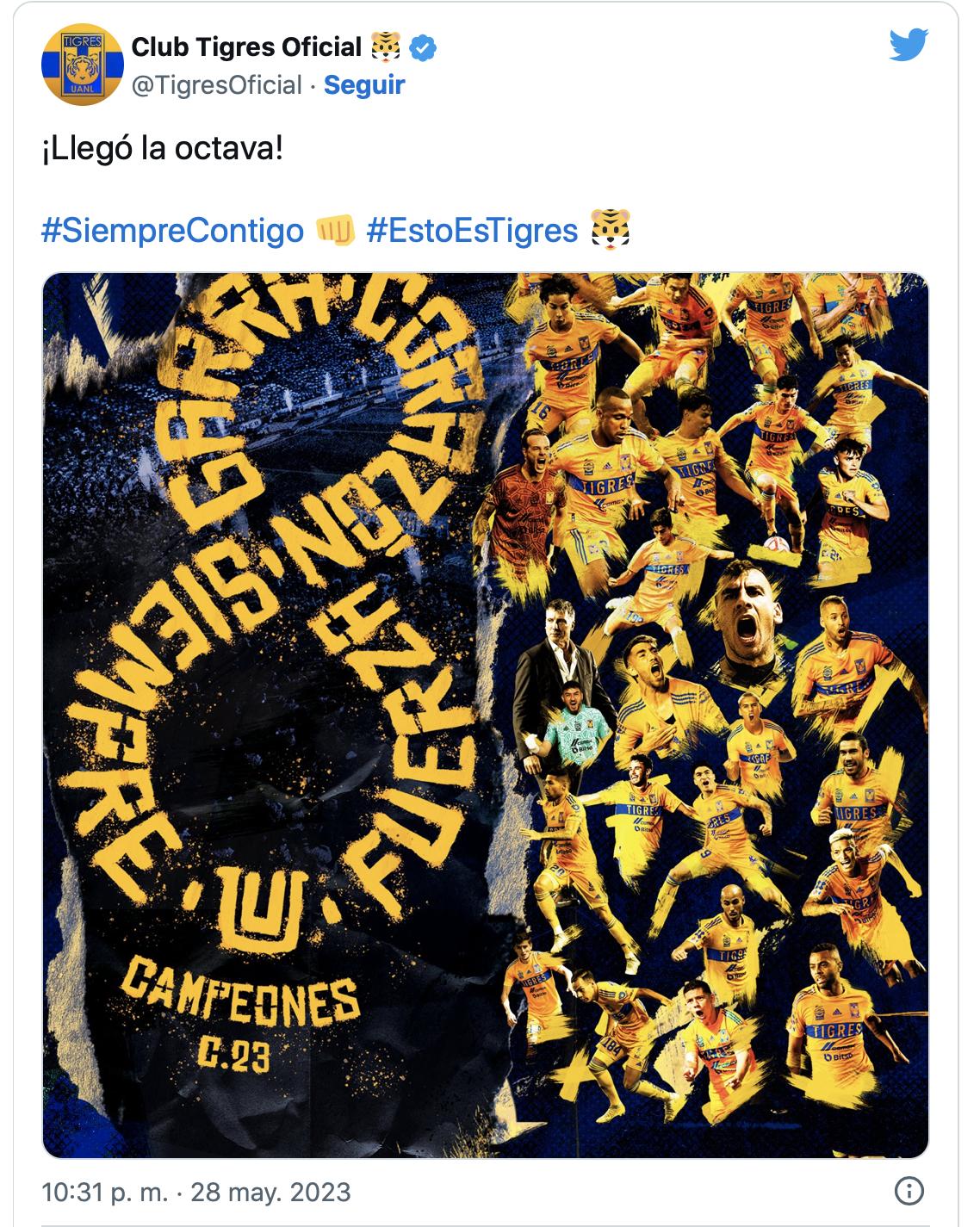 Tigres se llevó su octavo título en la Liga MX y se colocó a la par del León en el ranking de equipos con más campeonatos ganados, por debajo de Cruz Azul, el cuarto equipo más ganador con nueve estrellas.”