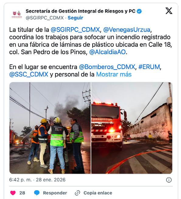 reaviven. Estamos en la parte final, prácticamente del incendio. El humo negro que salió es justamente porque eran láminas de plástico y eso siempre provoca este humo negro. No tenemos fallecidos, no tenemos heridos y en este momento estamos viendo cómo culminamos este incidente…. Hay 10 pipas, pero tenemos otras ocho que están en camino”, explicó.