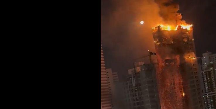 El portal G1 describió que se observan grandes llamas en lo alto del edificio Botanik, propiedad de la constructora Carrilho.