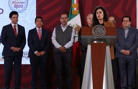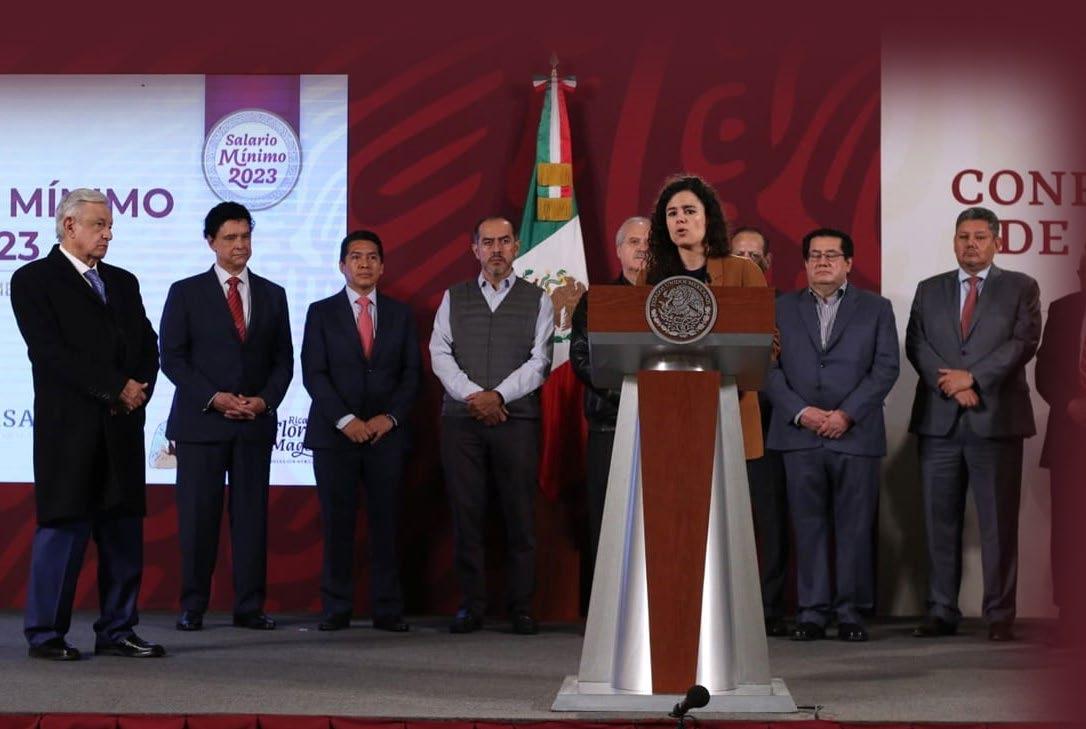 Por su parte, Luisa María Alcalde, titular de la Secretaría del Trabajo y Previsión Social, dijo que con el incremento al salario mínimo alrededor de 6.4 millones de trabajadores se verán beneficiados con la política a partir del primer día del 2023. “Informarles que 6.4 millones de trabajadores serán beneficiados con esta política; es decir, que a partir del primero de enero se incrementará su poder adquisitivo y con ello también se dará dinamismo a la economía local, al mercado interno y se apoyarán no solamente directamente a los trabajadores, sino a sus familias”, manifestó.