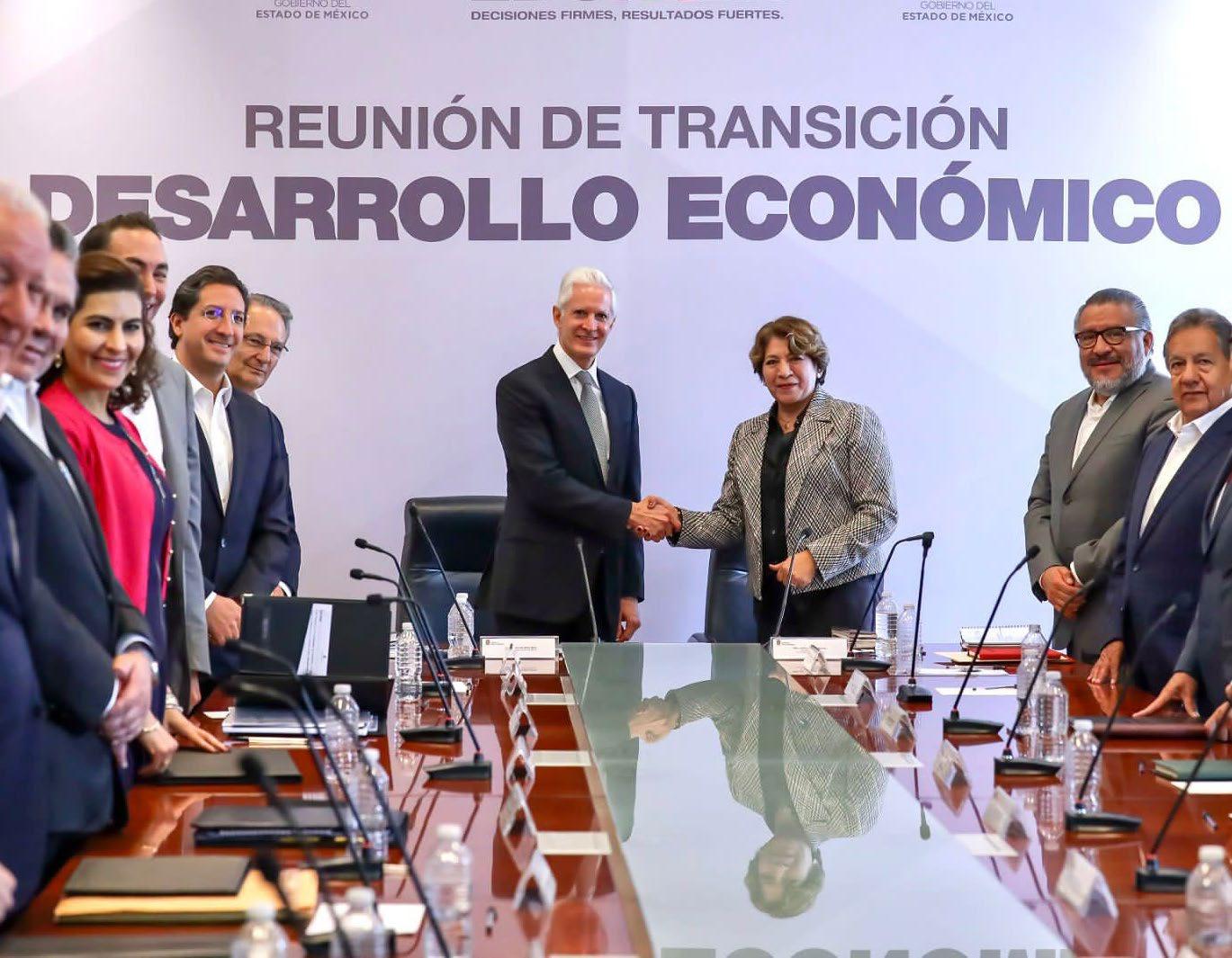 El gobernador del Estado de México, Alfredo Del Mazo, y su sucesora, la gobernadora electa Delfina Gómez, sostuvieron la séptima y última reunión de transición para dar cuenta de los avances que existen en la entidad en desarrollo económico estatal, campo y medio ambiente. Gómez Álvarez indicó que los temas tendrán atención primordial, para generar bienestar, desarrollo y crecimiento para los mexiquenses, brindando oportunidades de trabajo bien remuneradas para la población, especialmente las juventudes. También indicó que se pondrá énfasis en los temas de inversiones, productividad y competitividad, con el objetivo de hacer del Estado de México una entidad sólida, próspera y con crecimiento económico.