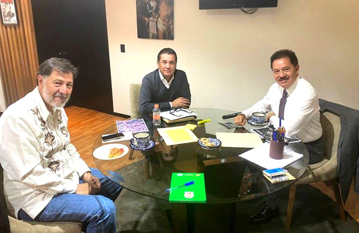 Los coordinadores de Morena, Ignacio Mier, del PVEM, Carlos Alberto Puente Salas, y el diputado del PT, Gerardo Fernández Noroña, se reunie ron para desmentir la versión de que hay una fractura y que por ello no se discutió hoy el dictamen de la reforma electoral, en la sesión de la Cámara de Diputados. El coordinador de la ban cada guinda publicó una fotografía en su cuenta de Twitter, con el siguiente mensaje: