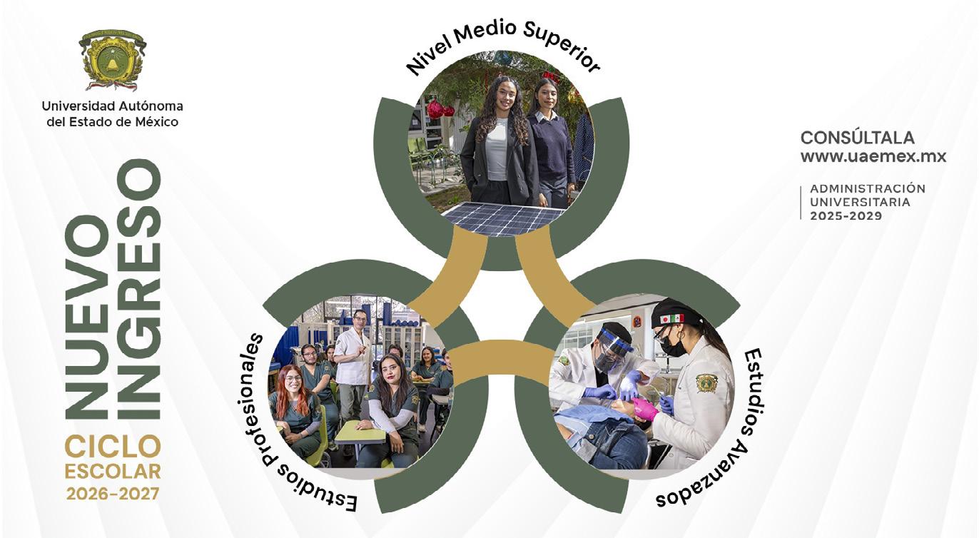 Para quienes aspiran a cursar Estudios Profesionales, la Máxima Casa de Estudios mexiquense convoca a personas egresadas del nivel medio superior o que estén por concluirlo, a participar en el concurso de ingreso a licenciaturas y programas de Técnico Superior Universitario, en modalidades escolarizada, no escolarizada y mixta. La oferta académica comprende casi dos centenares de programas impartidos en facultades, centros universitarios y unidades académicas profesionales ubicadas en distintas regiones de la entidad. El registro de solicitudes también se llevará a cabo en febrero de 2026 y el ciclo escolar iniciará el 4 de agosto de 2026.