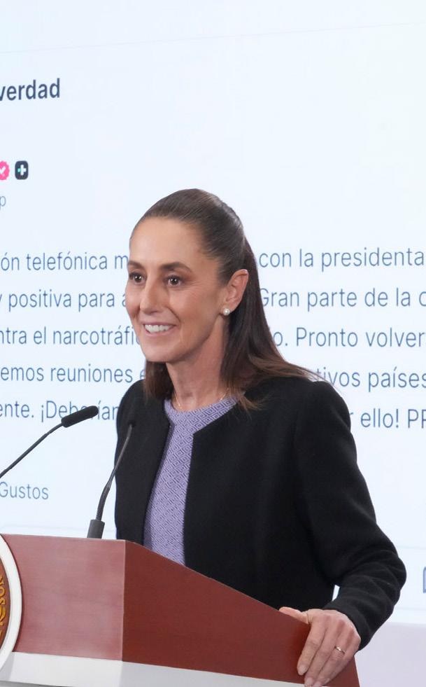 “Tuve una conversación telefónica muy productiva con la Presidenta de México, Claudia Sheinbaum. Fue muy positiva para ambos países. Gran parte de la conversación se centró en la frontera, la lucha contra el narcotráfico y el comercio. Pronto volveremos a hablar y, en última instancia, programaremos reuniones en nuestros respectivos países. México tiene una líder maravillosa e inteligente. ¡Deberían estar muy contentos