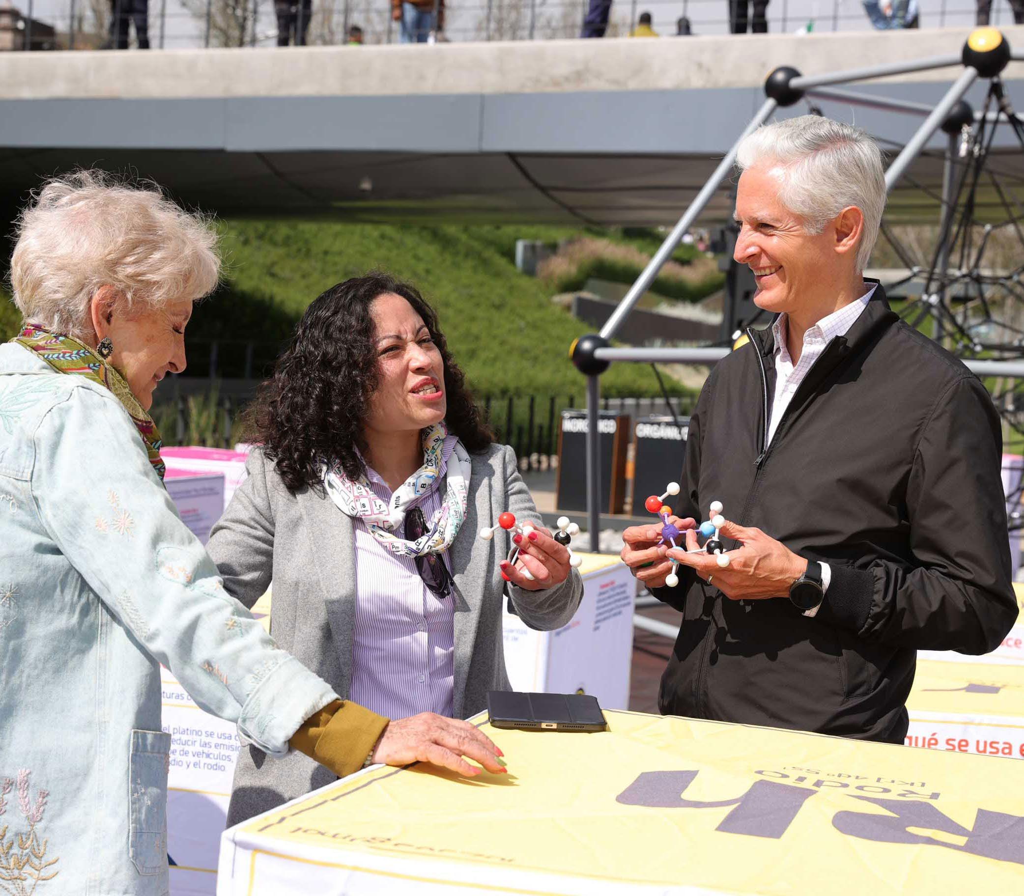 En este sentido, el dirigente estatal anunció el lanzamiento de la convocatoria para for mar parte del programa «Científicas y Aca démicas Edoméx 2022», el cual prevé admitir más de 120 proyectos este año, y los cuales recibirán financiamiento para desarrollarse. Asimismo, explicó que este programa es único en su tipo a nivel nacional, ya que en el Estado de México se respalda y confía en las mujeres, por lo que se trabaja para brindarles más oportunidades de superación en todos los ámbitos. «Hoy estamos lanzando la nueva convocatoria de apoyo de este programa muje res «Científicas Investigadoras Edoméx 2022″, en donde más de 120 proyectos van a recibir financiamiento para poder desarrollarse, para poder impulsar y con esto seguir impulsando, sobre todo, a la ciencia por supuesto, pero en especial a las mujeres», externóEn un reco rrido que hizo por este parque, en compañía de investigadoras mexiquenses que partici pan en la exposición fotográfica, Del Mazo Maza también observó una Tabla Periódica monumental, que estará abierta al público en este lugar durante las próximas dos semanas. La Tabla Monumental está conformada por 118 cubos correspondientes a cada elemento descubierto hasta la fecha, cada uno muestra quién y cómo descubrió cada elemento, así como su uso en la vida cotidiana y su presen cia en la naturaleza.