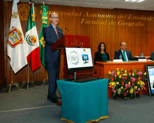 L a Facultad de Geografía poseé un alto sentido de responsabilidad y colaboración, gracias a esto hemos podido establecer distintos convenios de colaboración que han beneficiado a esta comunidad universitaria afirmó el rector de la Universidad Autónoma del Estado de México (UAEMex), Carlos Eduardo Barrera Díaz. Al encabezar el tercer informe de actividades del director de la Facultad de Geografía, Rodrigo Huitrón Rodríguez, Barrera Díaz destacó que durante el año que se informa se llevó a cabo la rehabilitación del sistema de captación de agua pluvial de los edificios “B” y “C” y la rehabilitación de la cisterna para la obtención de agua potable, lo que hace de este organismo académico el más sustentable de la Autónoma mexiquense.