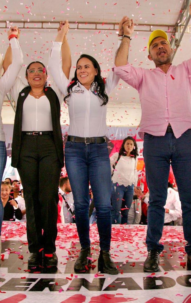 color de un partido. Sólo con unidad será posible derrotar a Morena, todas y todos los que estamos aquí tenemos una misión, ¿Cuál es nuestra misión? Ganarle a Morena la gubernatura del Estado de México. Todas y todos los que estamos aquí tenemos una misión, ganarle a Morena la gubernatura del Estado de México”, dijo la candidata. Argumentó que los municipios donde gobierna Morena se han disparado los índices de criminalidad y pobreza, por lo que estimó necesario evitar su llegada. Para Temascalapa, prometió avanzar en la modernización del Centro Especializado de Atención Primaria (CEAPS) y la extensión de un tecnológico a fin de ofrecer educación a jóvenes.