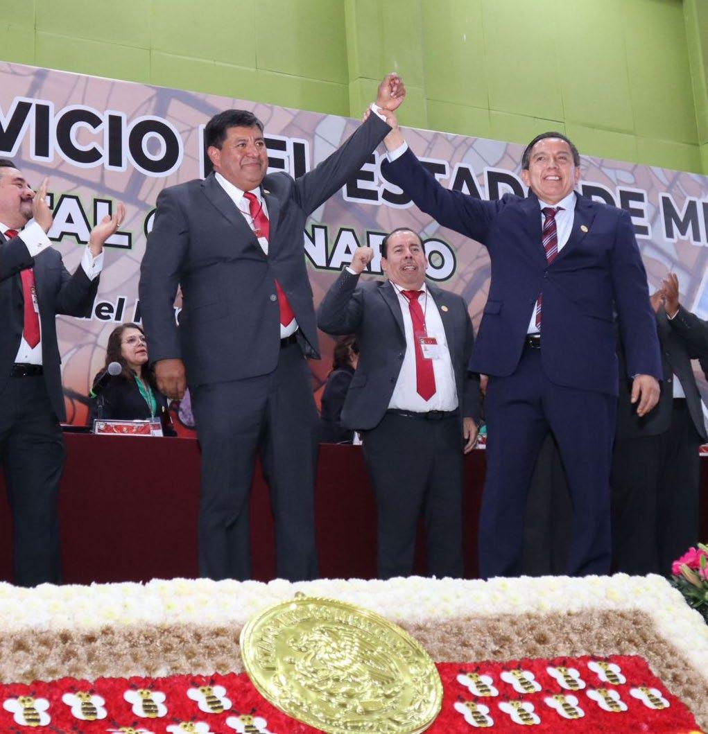«Porque sabemos que juntos en unidad podemos lograr el bienestar de las maestras y los maestros», afirmó, acompañado por su Comité Ejecutivo Estatal.