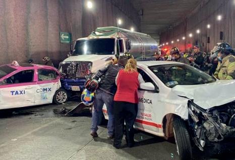 Pipa sin frenos provoca choque múltiple en túnel de Río Mixcoac; hay siete lesionados