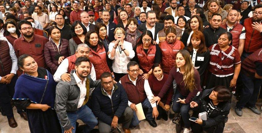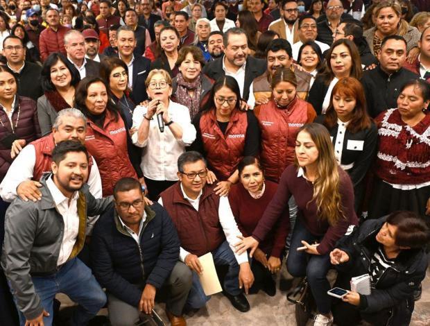 Apuntó que Morena realizará un tra bajo a ras de tierra, por lo que irá casa por casa para promover el proyecto de gobierno que encabeza su líder moral, el Presidente Andrés Manuel López Obra dor. Aunque la propia Delfina Gómez no emitió un mensaje, ante los saludos de