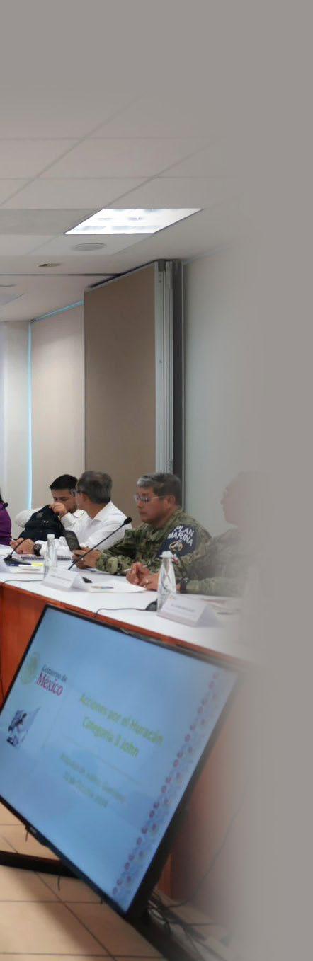 las instalaciones de la Décima Segunda Región Naval, se dio a conocer que se logró habilitar el paso vehicular de Coyuca de Benítez, reanudando la comunicación con la zona de la Costa Grande. Se continúa además con el retiro de material de banquetas y calles y se realiza la limpieza de vialidades en el tramo Puerto Marqués, que equivale a 3,266 metros cúbicos de material de arrastre en 860 metros lineales. Mientras tanto, la Comisión de Potable, Alcantarillado y Saneamiento del Estado de Guerrero (Capaseg) apoya con un equipo de bombeo de ocho pulgadas de diámetro, continuando con las acciones de desalojo de las aguas pluviales en el Aeropuerto Internacional de Acapulco. La Secretaría de la Defensa Nacional (Sedena) y la Guardia Nacional participan de 12,699 elementos y 457 vehículos; mientras que de la Secretaría de Marina participa, 1,840 elementos, 43 vehículos, dos aeronaves, 24 embarcaciones, dos pipas de agua, dos plantas potabilizadoras, una tortilladora y tres cocinas móviles.