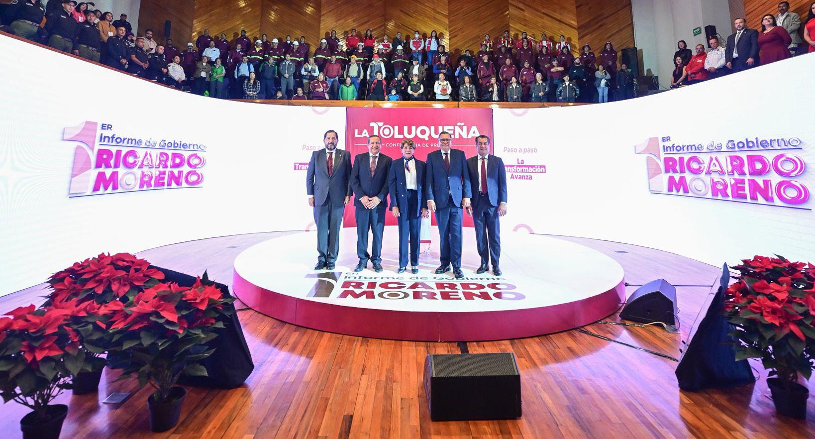 En la presentación de su Primer Informe de Gobierno, Ricardo Moreno afirmó que su administración mantuvo un ejercicio permanente de austeridad republicana, transparencia y diálogo abierto con la ciudadanía, además de sostener su compromiso público de escuchar todas las voces, incluidas aquellas que son críticas severas. Destacó que trabaja de manera estrecha y coordinada con el Gobierno del Estado, encabezado por la maestra Delfina Gómez Álvarez, y con el Gobierno de la República, liderado por la doctora Claudia Sheinbaum Pardo, quienes con su visión y ejemplo muestran cómo se