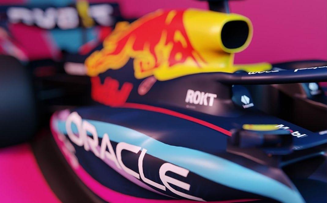 El poderoso y dominante RB19 tendrá de base su tradicional azul, con los distintivos del equipo y las marcas que le acompañan, pero con franjas en los costados rosas y azules claros, colores que suelen relacionarse con Miami. M