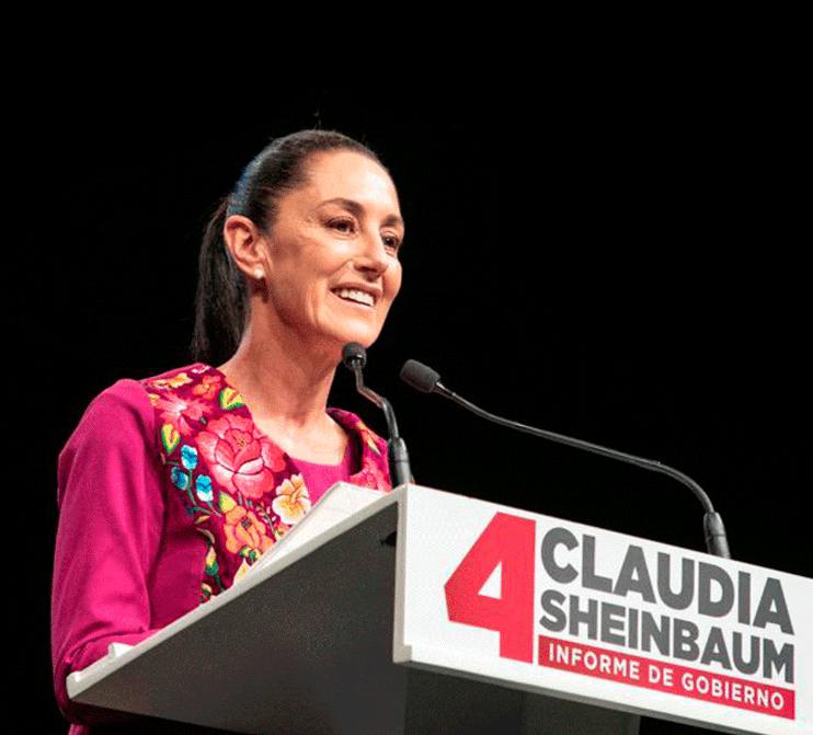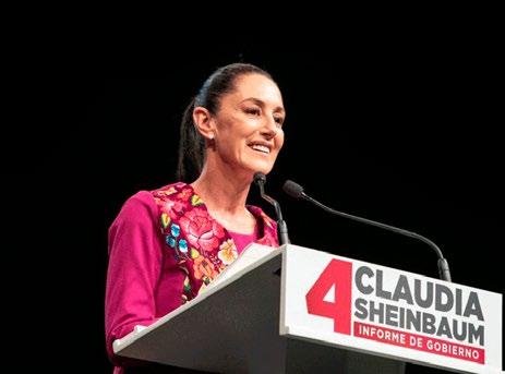 El Auditorio Nacional en la Ciudad de México se llenó con el color guinda, el sonido de la batucada, camiones de pasajeros y banderas con la leyenda #EsClaudia para el Cuarto Informe de la jefa de Gobierno, Claudia Sheinbaum Pardo. Sheinbaum llega a su Cuarto Informe como una de las “corcho latas” nombradas por el presidente Andrés Manuel López Obrador hacia las elecciones presidenciales de 2024, ejercicio en el cual de competir, la manda taria capitalina posiblemente renuncie a su cargo en septiembre u octubre de 2023.