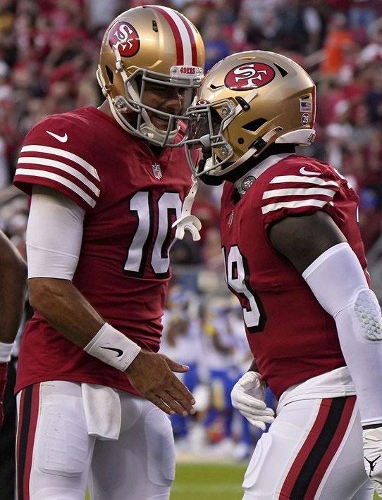 El mariscal de campo Jimmy Garo ppolo completó 16 de sus 27 pases para 239 yardas y un touchdown para impulsar así a los San Francisco 49ers en un aplastante triunfo sobre los campeones defensores Los Angeles Rams con marcador de 24-9, en el partido nocturno del lunes en la NFL. Los Rams, que intentan convertirse en los primeros campeo nes en repetir desde que New England ganó los Super Bowls de 2004 y 2005, cayeron ahora con balance de 2-2, el mismo récord que los 49ers y sus rivales de la División Oeste de la Conferencia Nacional, Arizona y Seattle. “Había un ambiente infernal aquí y eso siempre nos anima”, dijo Garoppolo. “Estos juegos