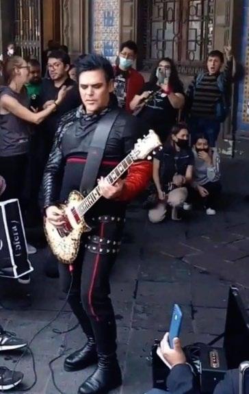 En el Zócalo de la Ciudad de México puede pasar absolutamente todo, sin embargo, pocas personas esperaban ver al guitarrista de Rammstein, Richard Kruspe, tocando en vivo como si se tratara de cualquier músico urbano. Pues sí, el artista tomó su guitarra y tocó algunas notas de la banda a un costado de la plancha del Zócalo. Kruspe y la banda ale mana dieron dos exitosos conciertos en el Foro Sol durante el fin semana y el martes se volverán a presentar, por lo que este lunes fue su día libre para conocer la ciu dad. Como era de esperarse, las personas que reconocieron al virtuoso guitarrista se acercaron para tomarles fotos y videos, además de pedirle un autógrafo.