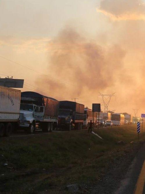 A través de redes sociales se publicaron fotos de la vía de comunicación cerrada y varios autos ardiendo provocando el temor entre los ciudadanos que transitaban por la zona.