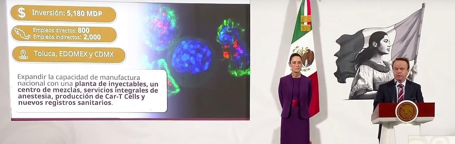 biotecnológicos y producción de insumos estratégicos para reducir la dependencia del extranjero. Entre los proyectos destacan: la primera planta en México de células CAR-T, una planta de fraccionamiento de plasma humano, nuevas plataformas biotecnológicas y la fabricación local de materias primas para medicamentos. Estas inversiones generarán al menos 800 empleos directos y 2 mil indirectos.