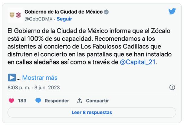 El Gobierno de la Ciudad de México informó que ya se encuentra al 100% de su capacidad el Zócalo capitalino por lo que recomendó a los asistentes al concierto de Los Fabulosos Cadillacs a disfrutarlo a través de las pantallas