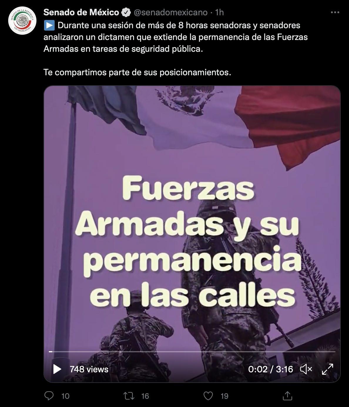El pleno del Senado aprobó con 87 votos a favor, 40 en contra y 0 abstenciones, la reforma que permitirá ampliar la presencia del Ejército en las calles hasta 2028. Aunque Morena no contaba con los votos suficientes para lograr la mayoría calificada, durante el debate con siguió sumar adeptos, entre ellos legisladores del PRI como Jorge Carlos Ramírez Marín y el perredista Miguel Ángel Mancera. El 21 de septiembre, aunque el dicta men había sido aprobado en comisiones, la reforma fue retirada del pleno a petición de Morena, para que pudieran negociarse cambios que alcanzaran consenso. Ayer, tras algunos acuerdos, comisiones aprobaron un nuevo dictamen que incorpora algunas propuestas de la oposición. Por ejemplo, hacer que el gobierno federal deba entregar informes semestrales sobre el trabajo de soldados y marinos o formar una comisión bicameral que los vigile. Otro de los puntos que logró plasmar la oposición fue el fondo para poder fortalecer a las poli cías locales en 2023, pues anteriormente el dictamen establecía que sería hasta el 2024.