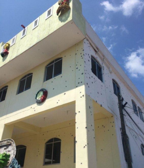 Al llegar al lugar se confirmó que la fachada del Ayuntamiento presentaba varios impactos de proyectil de arma de fuego.