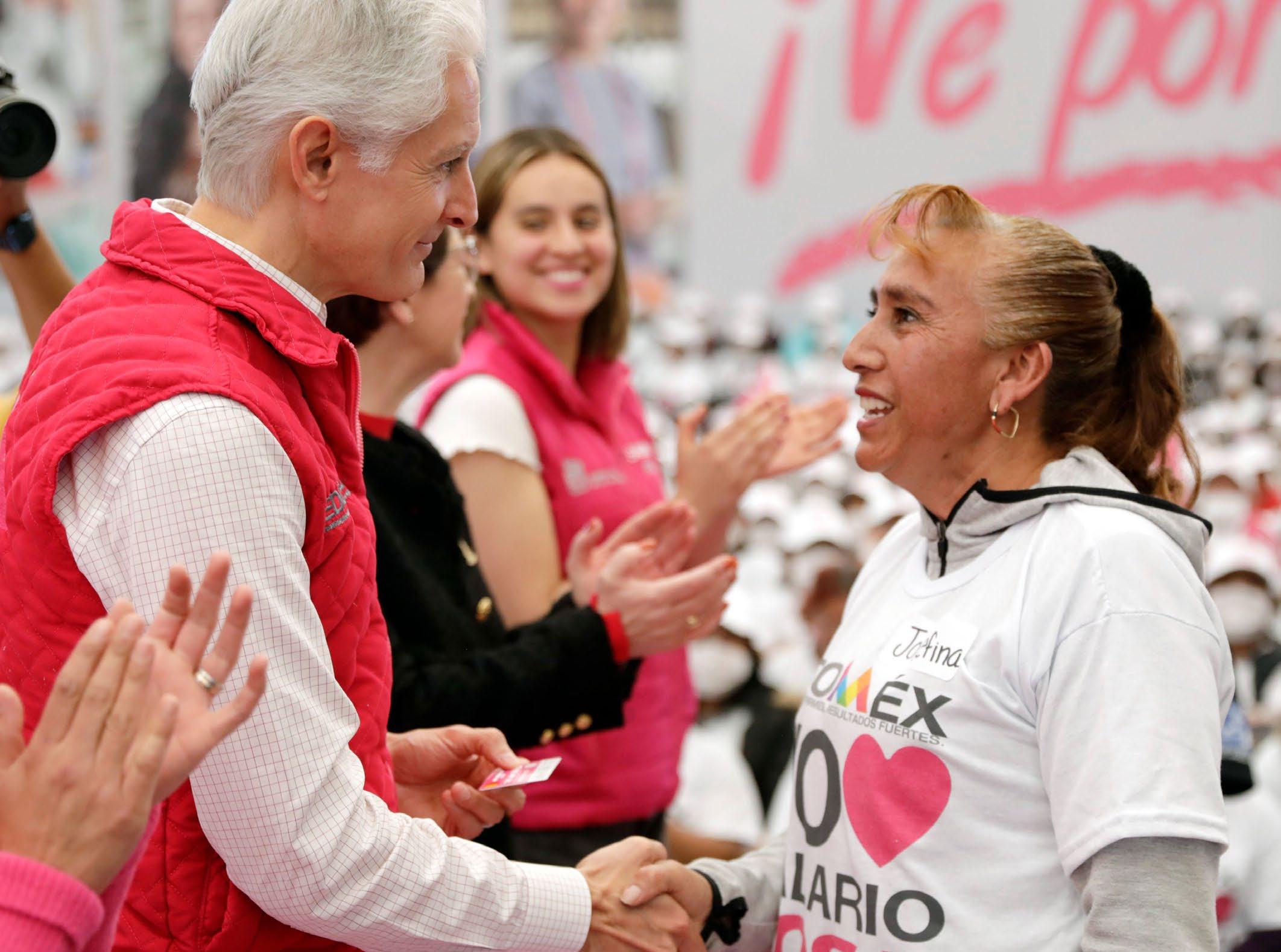 Más de 7 mil mujeres de 14 municipios del Estado de México recibieron su tarjeta del Salario Rosa por primera vez, sumando más de 600 mil beneficiarias que ya cuentan con este apoyo para sacar adelante a sus familias. “Hoy ya en todo el Estado de México, en los 125 municipios, tenemos más de 600 mil mujeres que reciben de manera constante su Salario rosa y queremos que sean cada vez más las que sigan sumando a este programa”, resaltó el gobernador Alfredo Del Mazo Maza. Durante la entrega de estos apoyos que se realizó en los campos de futbol del Deportivo Santa Cruz Acatlán en el municipio de Naucalpan, el mandatario mexiquense destacó que el Salario Rosa es para reconocer la gran labor que hacen las amas de casa, que muchas veces no es reconocido.