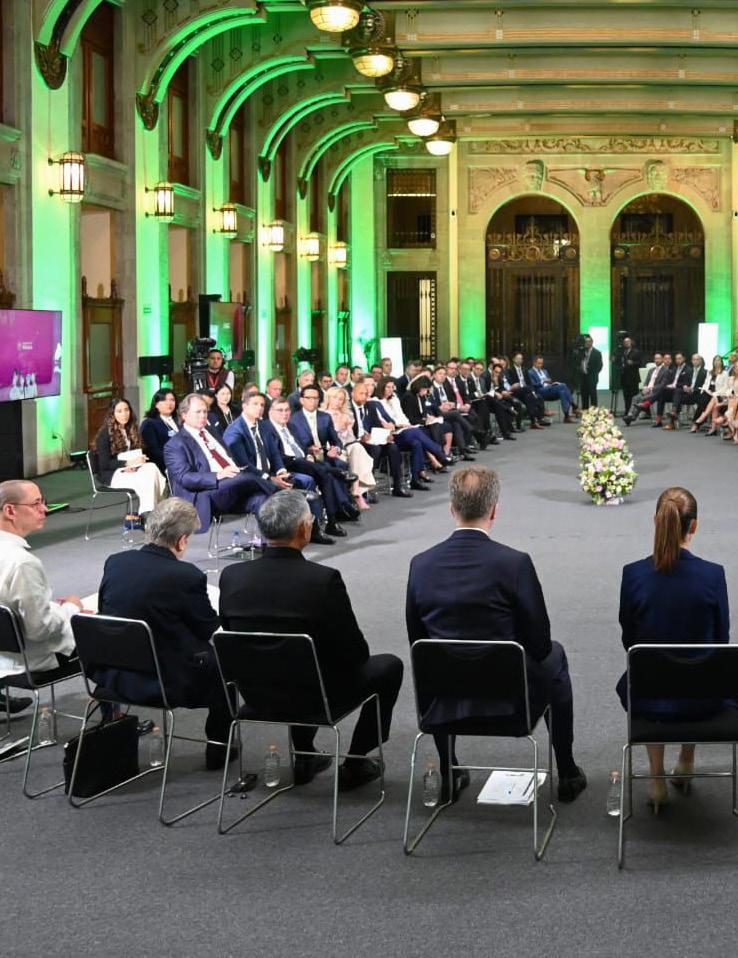 La presidenta de México, Claudia Sheinbaum, presentó a empresarios e integrantes del Foro Económico Mundial, el Plan México y sus objetivos de desarrollo. En el encuentro realizado en Palacio Nacional, asistieron empresarias y empresarios de 17 países, a quienes expuso que el Plan México busca fortalecer el mercado interno y el salario, así como la inversión pública y privada, aumentar la soberanía alimentaria, energética y la producción nacional, reduciendo las importaciones con países con los que no se tiene tratado comercial. Ante los miembros del Foro Económico Mundial, la jefa del Ejecutivo aseguró que con el Plan México el Gobierno de México fortalece la inversión pública y privada para alcanzar la soberanía alimentaria y energética. “Seguimos optimistas sobre el crecimiento económico de nuestro país”, externó.