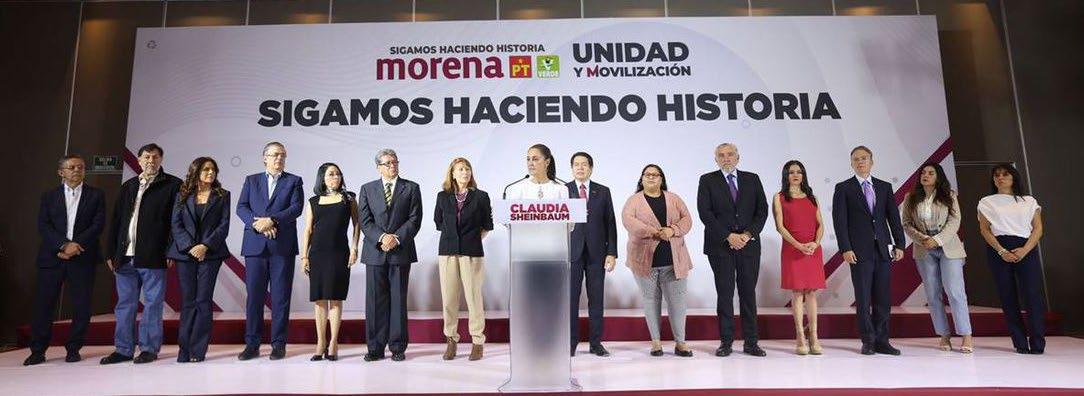 La candidata presidencial de la coalición “Sigamos Haciendo Historia”, Claudia Sheinbaum, anunció que Marcelo Ebrard, Manuel Velasco y César Yáñez se suma a su equipo de campaña. “Hoy quiero presentarles el ‘equipazo’ ganador del 2 de junio de 2024, como ven hay una enorme unidad en nuestro movimiento están aquí quienes participaron en la encuesta para la coordinación nacional de nuestro movimiento y mujeres de primera también que son parte de este equipo de