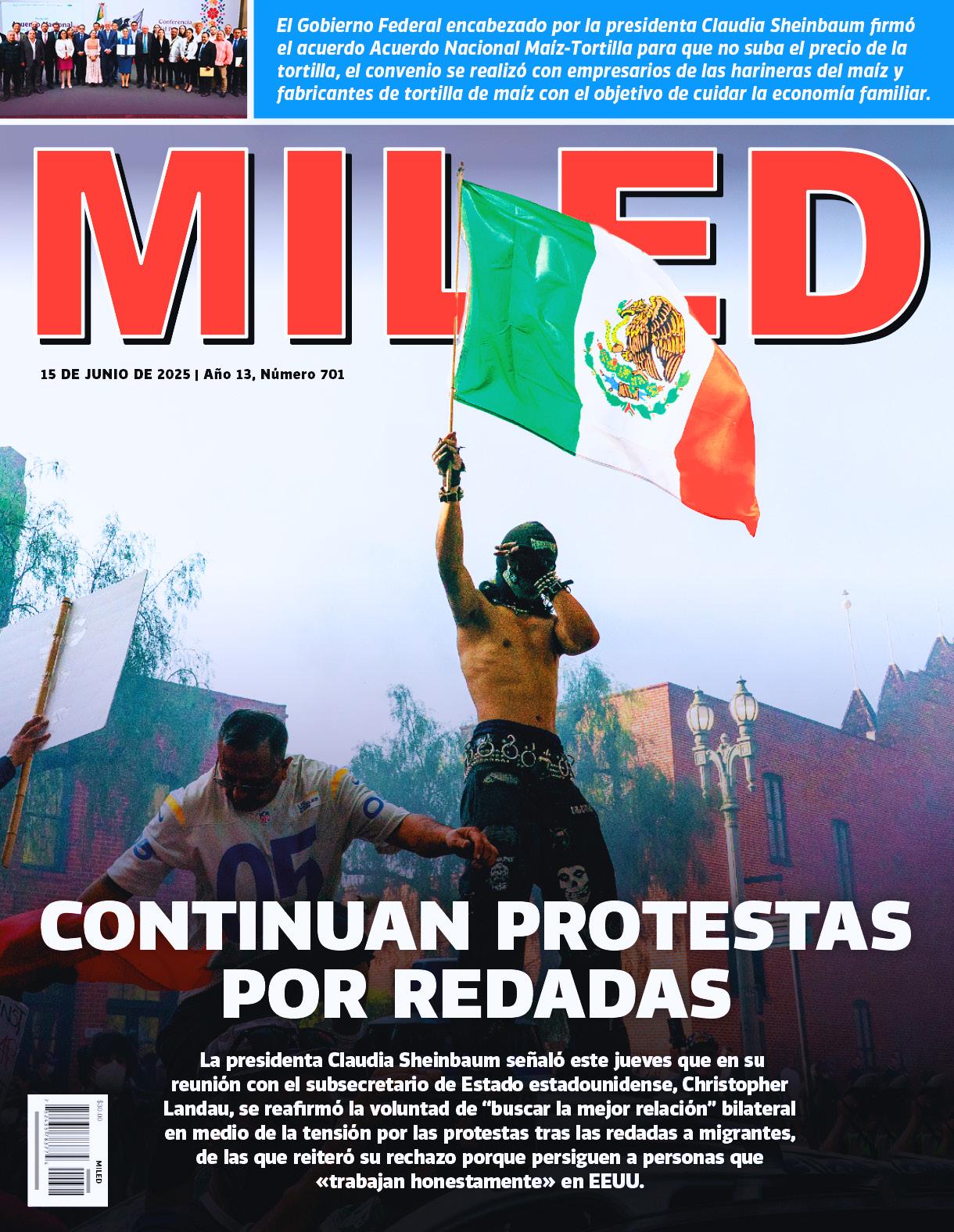 MILED MÉXICO edición matutina diaria. Se edita en su propia planta de Impresiones MLS S.A. de C.V. en Lázaro Manuel Muñoz No. 106 Col. Altamirano. Toluca de Lerdo, Méx. C.P. 50130. Teléfonos: 722 2179880 y 722 2179646. Fundado el 31 de Marzo de 2012. Se distribuye en la Ciudad de México e Interior del País. Certificado de Reserva de Derechos al uso Exclusivo del Título (Indautor) No. 101 110S16475100-2013-04. Certificado de Licitud de Título y Contenido No.16214. Servicios informativos de las agencias Notimex, SUN, EFE, United Feature Syndicate, Inc. NY, United, AP. Oficinas y Salas de Redacción en Nayarit No. 88 Col. Roma, Alcaldía Cuauhtémoc, Ciudad de México. C.P. 06760. Tel. 55644070. Precio del Ejemplar $5 pesos. Números atrasados el doble. Asociado a AIPE (Asociación Internacional de Prensa). Distribuido por la Unión de Expendedores y Voceadores de los Periódicos de México, A.C. Los firmantes son responsables de sus artículos. Se prohibe la reproducción total o parcial del contenido de esta edición. Dirección en Internet www.miled.com