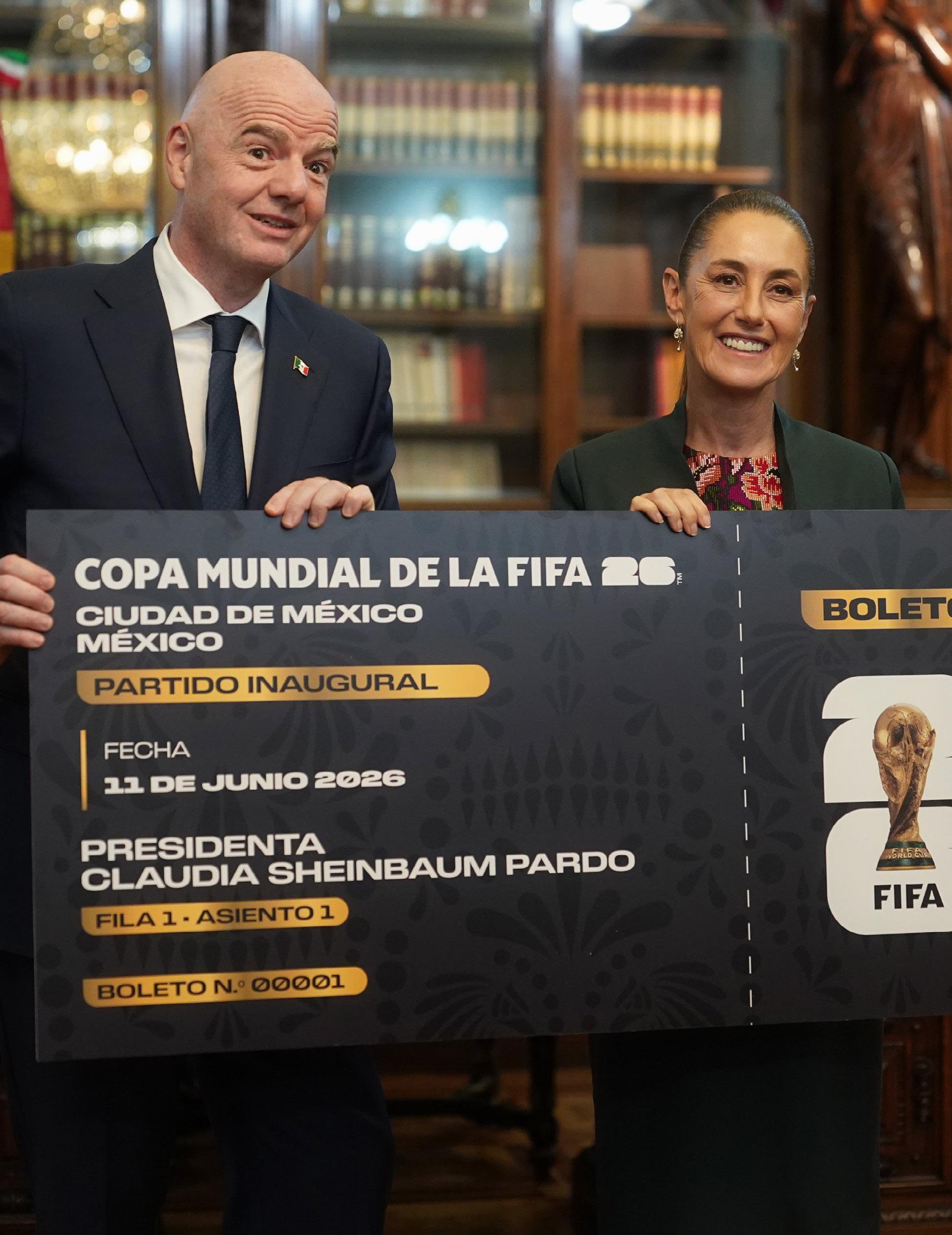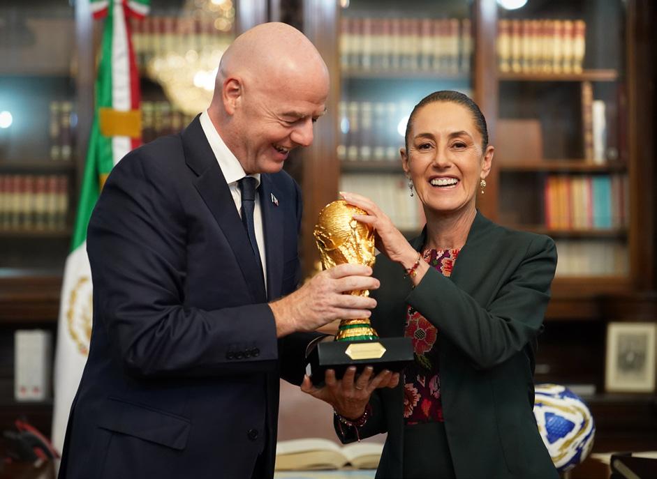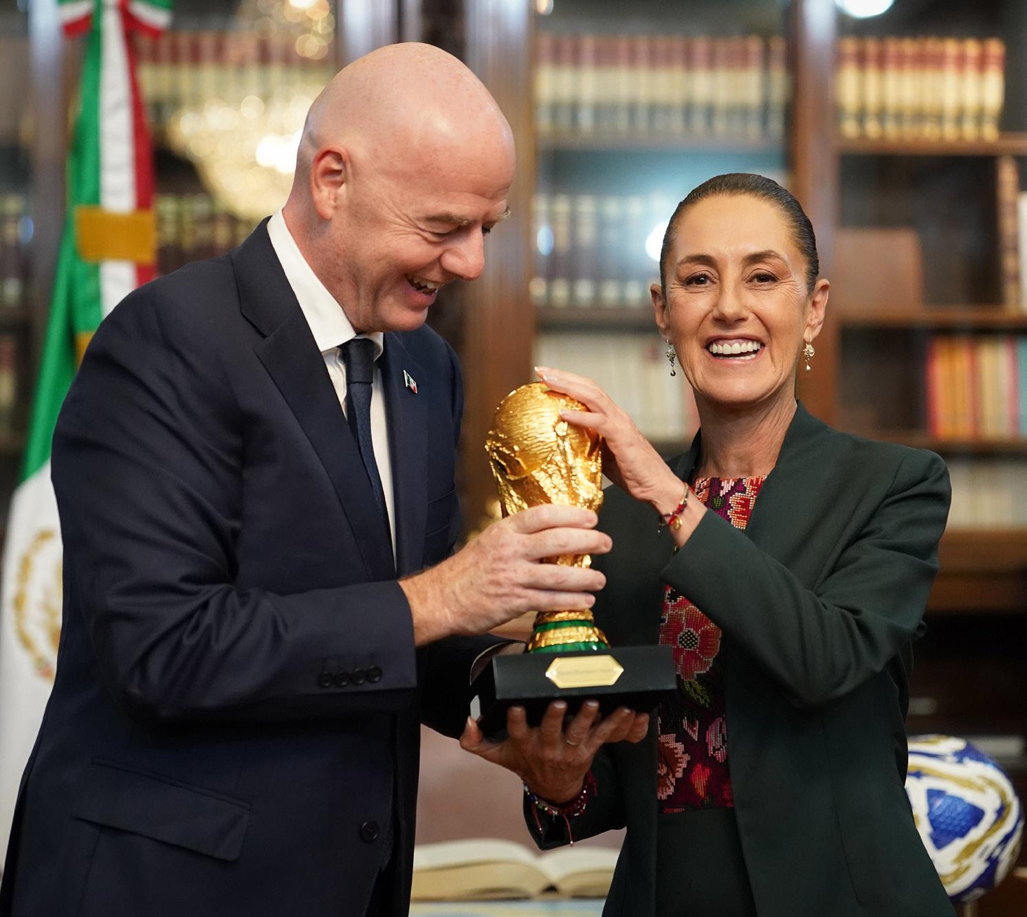 En redes sociales, la mandataria federal escribió que México vivirá un momento extraordinario con el mundial de futbol, el cual se desarrollará en conjunto con Estados Unidos y Canadá. Destacó que, México tendrá el orgullo de ser sede de la inauguración en el Estadio Azteca el próximo 11 de junio de 2026. Asimismo, recordó que en Ciudad de México, Guadalajara y Monterrey se llevarán a cabo 13 partidos de la gran fiesta deportiva. Sheinbaum Pardo, en compañía con al alto mando de la FIFA, compartió diversas fotografías entre ellas una cargando la Copa del Mundial, la cual puede ser tocada por jugadores ganadores del campeonato y los presidentes de los países anfitriones. Recientemente, Gianni Infantino acudió a la Casa Blanca para reunirse con el presidente de Estados Unidos, Donald Trump, a quien le agradeció la creación de un grupo de trabajo especial encargado de supervisar los preparativos del Mundial de Clubes FIFA 2025 y de la Copa Mundial de la FIFA 2026. Cabe recordar que, el sorteo para la fase de grupos del Mundial 2026 que se celebrará en su país, en México y en Canadá, se efectuará el próximo 5 de diciembre en el Centro Kennedy de Washington.
