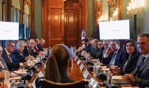 miembros de su gabinete con los funcionarios brasileños en Palacio Nacional el 28 de agosto al mediodía. La finalidad del encuentro era hacer un resumen de los diálogos que mantuvieron los grupos empresariales y los secretarios de Estado de las dos naciones en las últimas horas, según adelantó Sheinbaum Pardo al hablar de los resultados de la labor conjunta.