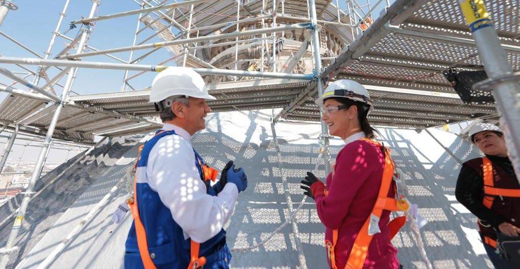 Naciones Unidas para la Educación, la Ciencia y la Cultura (UNESCO), en la que también estuvieron presentes el rector de la Catedral Metropolitana, Ricardo Valenzuela, y el Padre Alfredo Quintero, la mandataria capitalina agradeció la oportunidad de conocer las obras que se hacen tras los daños ocasionados al monumento durante el sismo de 2017.
