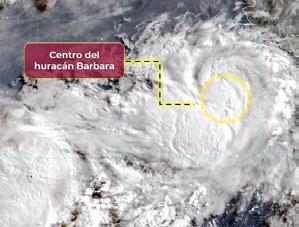 A las 09:00 horas del tiempo del centro de México, Bárbara se convirtió en huracán categoría 1 en la escala Saffir-Simpson, informó el Servicio Meteorológico Nacional (SMN).