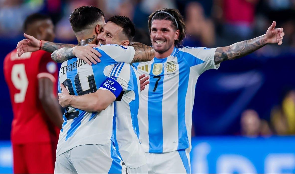finales, cuando todo estaba prácticamente definido. Las cifras definitivas las terminó poniendo el capitán y goleador de La Albiceleste: Lionel Messi. La Pulga anotó su primer gol (55’) en esta edición del certamen de la Conmebol luego de que apareció completamente solo dentro del área rival y desvió un disparo de Enzo Fernández. Argentina no permitió que Canadá siguiera haciendo historia en la Copa América y apagó sus ilusiones con el único propósito de buscar el bicampeonato para que La Scaloneta siga en lo más alto.