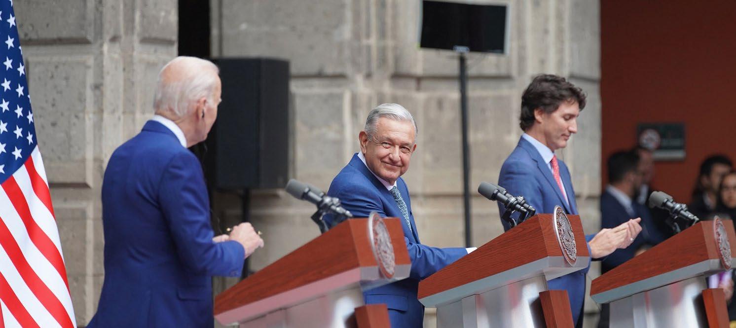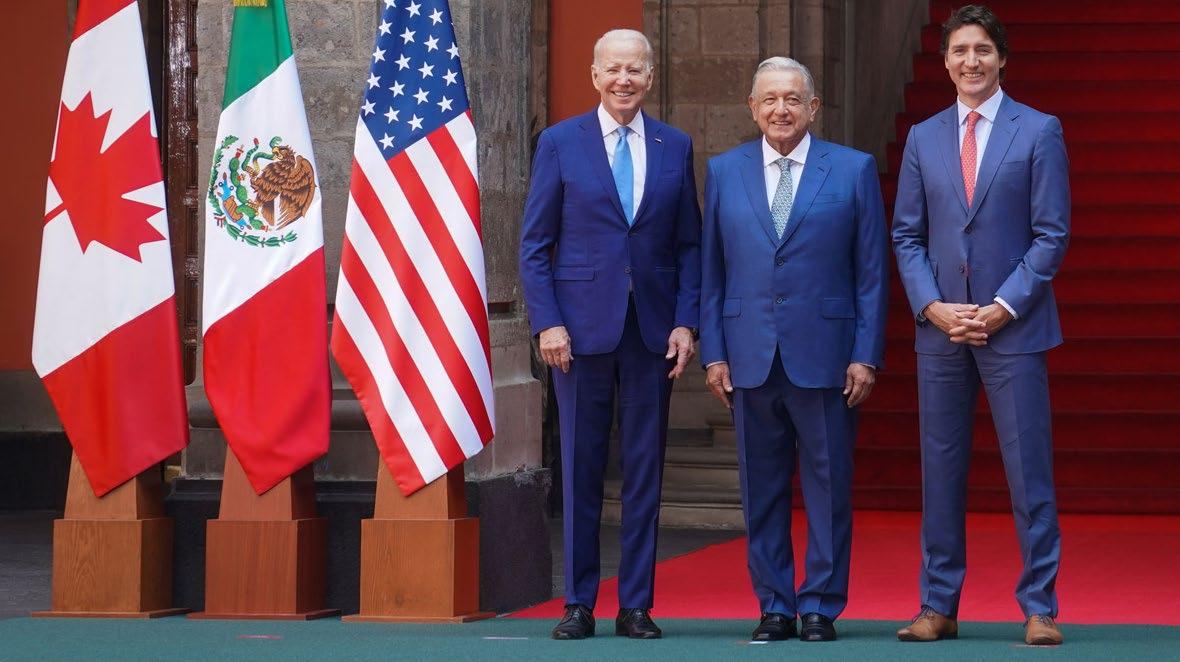 El presidente Andrés Manuel López Obrador recibió al mandatario de Estados Unidos, Joe Biden, y a Justin Trudeau, primer ministro de Canadá, en Palacio Nacional para iniciar la X Cumbre de Líderes de América del Norte