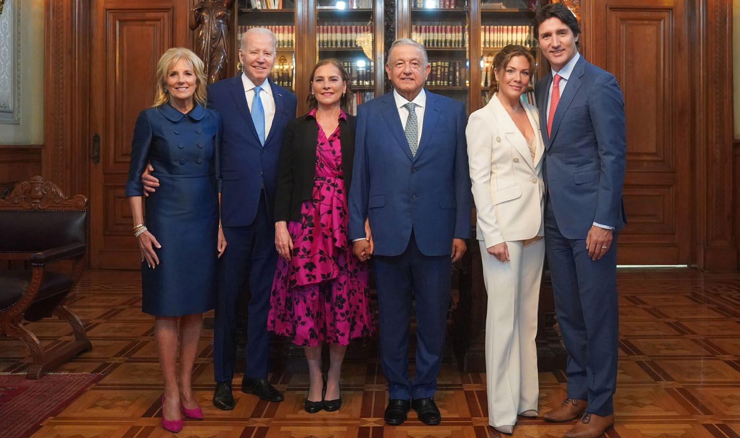 El presidente López Obrador y su esposa acompañaron al primer ministro de Canadá y su esposa en un breve recorrido por la Intendencia de Palacio Nacional, donde estuvieron presos Francisco I. Madero y José María Pino Suárez. Posteriormente, a las 11:54 horas, el presidente de Estados Unidos de América y su esposa arribaron al recinto a bordo de “La Bestia”, tras un recorrido por Paseo de la Reforma, acompañados por un convoy de más de 20 vehículos. En el Patio de Honores, los tres mandatarios y sus esposas se tomaron la foto oficial, y después hubo una segunda foto solo con López Obrador, Biden y Trudeau presentes. El encuentro se da previo inicio de la X Cumbre de líderes de América del Norte.