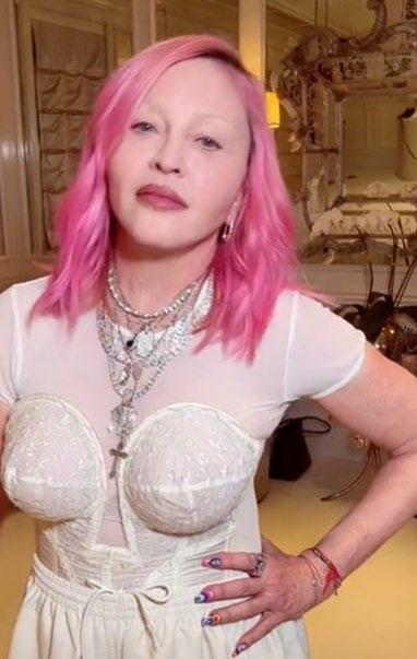 En el clip en cuestión, Madonna aparece en el baño de su casa mientras intenta “encesatar” su ropa interior en un bote de basura: “Si fallo, soy gay” y aunque esta declaración si atrajó la atención de los usuarios, lo que real mente se convirtió en tema de conver sación fue su look, ya que aparecía completamente de blanco, con el cabello rosa, sin cejas, con el rostro hinchado y las facciones completamente cambiadas. M
