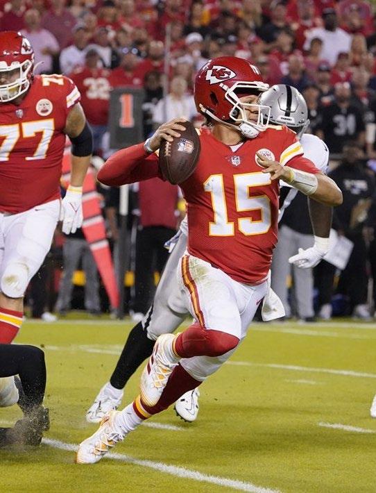 El mariscal de campo Patrick Mahomes logró cuatro touchdowns con a Travis Kelce y los Kansas City Chiefs se recu peraron de un déficit de 17 puntos para vencer este lunes a los Raiders de Las Vegas con marca dor de 30-29 en la NFL. Los anfitriones Chiefs mejoraron ahora a 4-1 mientras que los Raiders se hundieron más con un balance negativo de 1-4, igualando el peor récord de la liga. Mahomes completó 29 de 43 pases para 292 yardas sin una intercepción, mientras que Kelce atrapó siete pases para 25 yardas. El estelar quarterback Mahomes lanzó un pase de touchdown de 4 yardas a Kelce en la primera serie del tercer cuarto para acercar a Kansas City 20-17.
