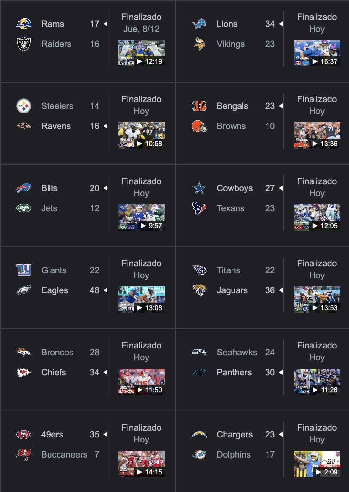 lucha por los playoffs en la AFC (23-17). Tras su derrota la semana pasada ante Las Vegas Raiders, los Chargers (7-6) se quedaron sin margen de error ya en la recta final para entrar en los playoffs.