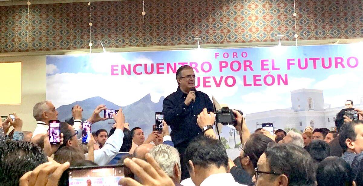 El canciller mexicano, además propuso tomar en cuenta las propuestas de la población. Para que se tome en cuenta para la elaboración del plan o programa que Morena va a presentar en el 2024 aquí tengo lo que dice el estado de Nuevo León, aquí tengo las propuestas de todos los municipios”, indicó. Añadió que las demandas de este estado son: agua, seguridad, infraestructura, pavimentación, salud, movilidad, entre otras.