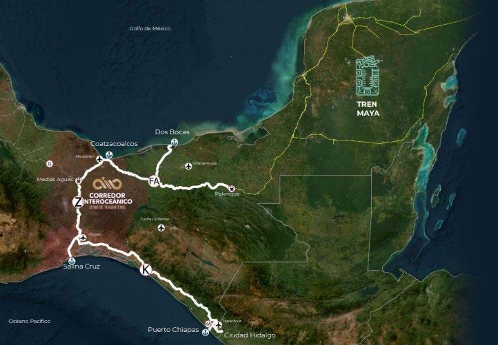 Esta obra de ingeniería, está integrada por la prestación de servicios sectorizados a la Secretaría de Marina, a través de las administraciones portuarias de Coatzacoalcos, Veracruz; Salina Cruz, Oaxaca; Dos Bocas, Tabasco y Puerto Chiapas, Chiapas, así como su interconexión con el Ferrocarril del Istmo de Tehuantepec. Descubre cómo los avances en el Corredor Interoceánico del Istmo de Tehuantepec han logrado recuperar y quitarle el poder sobre los bienes de la nación a grandes empresas como #Ferrosur. #InformeEspecial: Corredor del Istmo, la transformación del sureste. El Corredor Interoceánico contará con tres rutas que han sido nombradas como Z, FA y K. La ruta Z, tiene una extensión ferroviaria de 308 kilómetros y corre de Coatzacoalcos, Veracruz, a Salina Cruz, Oaxaca. Se realizó un recorrido por esa ruta, justo en el poblado de Estación Sarabia, municipio de San Juan Guichicovi, Oaxaca. En ese lugar pronto se inaugurará la estación con el mismo nombre.
